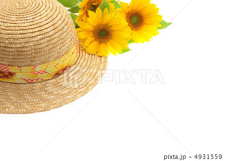 麦わら帽子とヒマワリ 夏イメージ イメージ素材