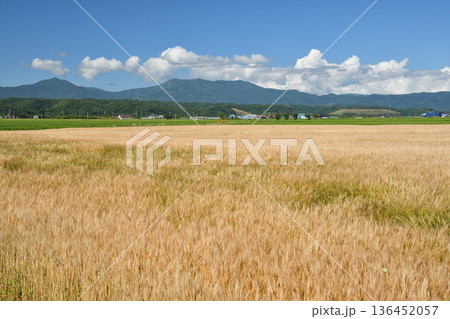 初夏の青空と小麦畑