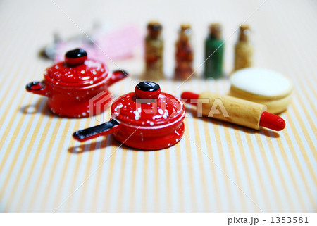 ミニチュアの鍋と麺棒と粉2