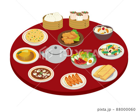 いろいろな、中華料理のアイコン(線画カラー)のイラストセット