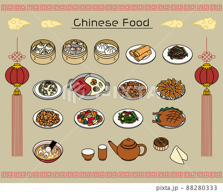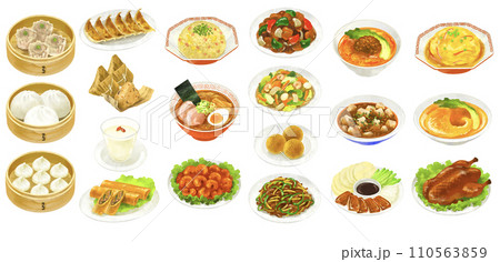 さまざまな中華料理のイラストセット(カラー)