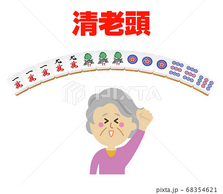 高齢者が清老頭をあがった麻雀のイラストイメージ