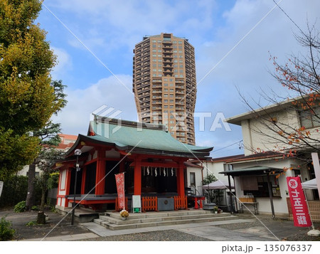 10月 港区1037麻布氷川神社本殿と元麻布ヒルズフォレストタワー・元麻布一丁目