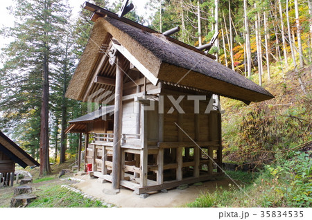 信州 東筑摩郡麻績村の文化財 神明社「本殿」側面 国重要文化財指定 神明造りの本殿