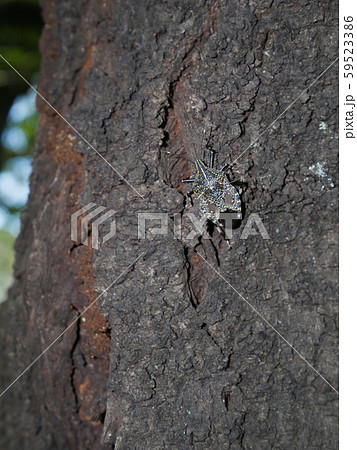生き物 昆虫 キマダラカメムシ、見事なカモフラージュ。かなりの確率で見過ごしそう、全部で何匹?