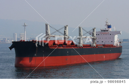 ハッチカバー全開と半開状態の、ばら積み貨物船