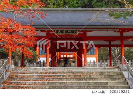 秋の高野山 英霊殿前の川のせせらぎと落葉