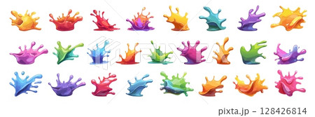 color splash set cartoon. yellow red pink green purple orange blue paint blot, drops bright multicolored vector illustration