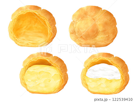 シュークリーム 中身 断面 カスタードクリーム 生クリーム