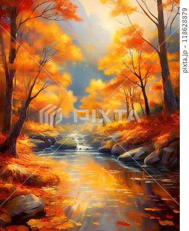 【秋素材】秋の戸隠高原鏡池【長野県】