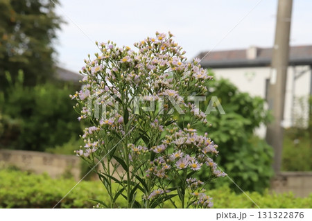 初夏の公園の花壇に咲くストケシアの紫色の花