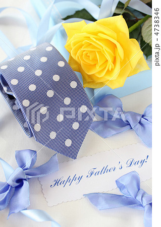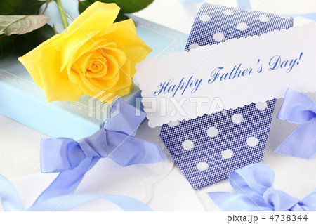 父の日の黄色と青のバラとリボンフレームのイラストセット