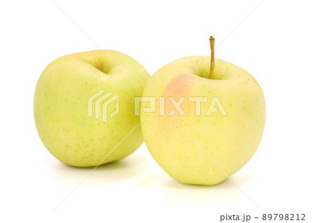トキ 黄色いリンゴ 丸ごと 2個 明るい背景
