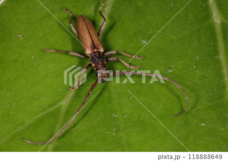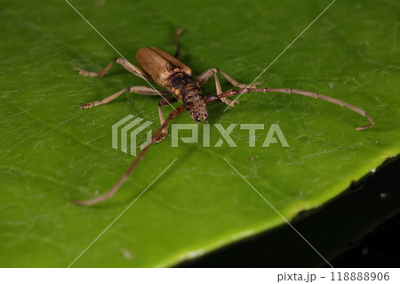 生き物 昆虫 キイロミヤマカミキリ、ミヤマカミキリの仲間。本州にもいますが暖地性のカミキリムシ