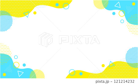 夏に使えるかわいい抽象的な幾何学模様のフレーム素材 チラシ・Web・動画16:9サイズ 水色 黄色