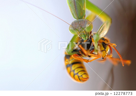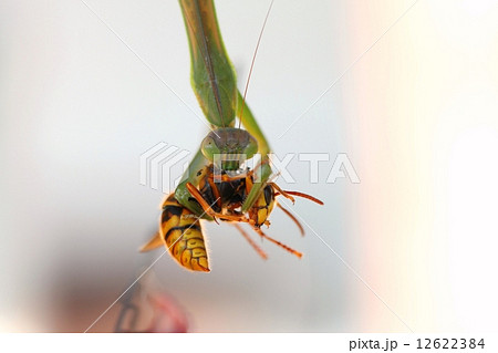 キイロスズメバチを捕食するカマキリ