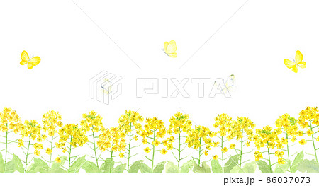 菜の花とモンシロチョウのイメージ_挿絵_フレーム