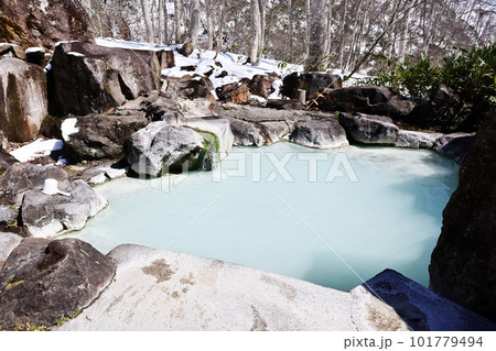 露天風呂の風景 湧き出る源泉の湯 黄金の湯 のんびり温泉 野天風呂 温泉イメージ 新潟観光名所