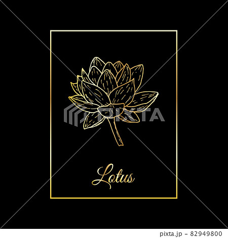 Lotus frame background. Line art floral design, fine hand drawn flowers, elegant water lily, luxury golden outlines, frame with copy space. Japanese traditional banner splendid vector concept