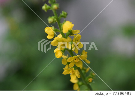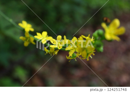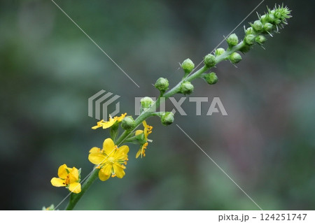 真夏、山野で咲く、黄色い小さなキンミズヒキ