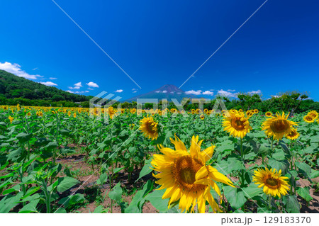 【花素材】山中湖村花の都公園にあるひまわりと青空【山梨県】