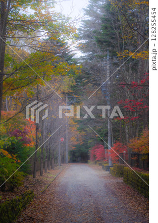 【秋素材】紅葉シーズンの霧に包まれた軽井沢の風景【長野県】