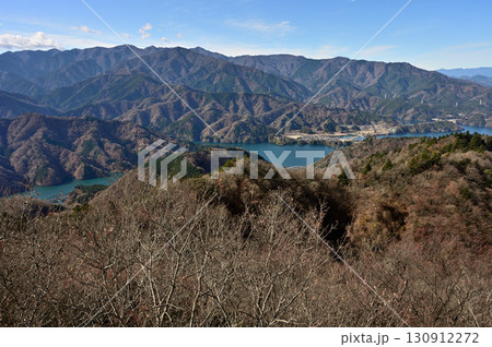 丹沢の高取山山頂 展望台からの展望 丹沢山地と宮ヶ瀬湖