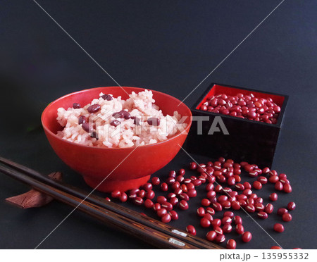 赤飯と小豆 沢山 豆 和風イメージ