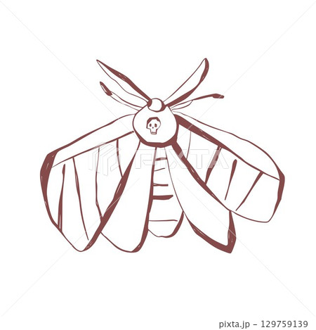 Mystical moth with skull detail hand drawn insect line art for tattoo design print decoration and boho aesthetic Vector illustration