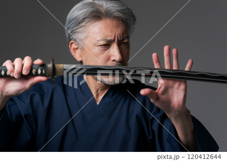 刀を持ったシニア男性