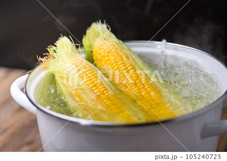 夏の料理 新鮮なトウモロコシをゆでる( とうもろこし )野菜をゆでる 茹でる