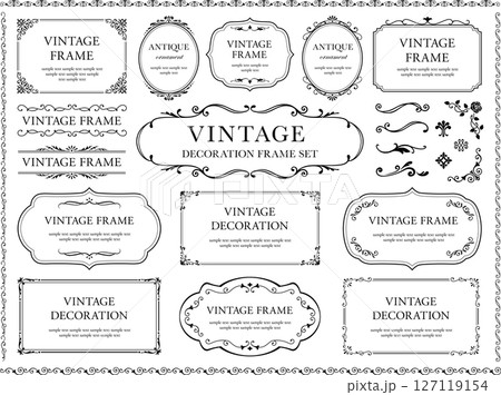 黒のビンテージフレームとボタニカルなオーナメントのセット
