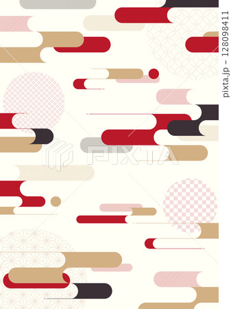 縦型Aサイズの和モダンな背景素材:日本の伝統的な柄と霞のある風景のイラスト