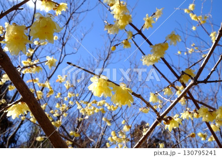 雑木林のロウバイ青空に向かって咲く 【相模原市津久井 1月】