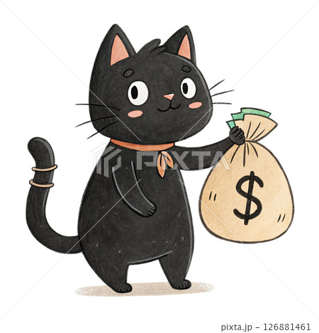 Black Cat minimal details and solid colors on a plain Clipart Watercolor White background