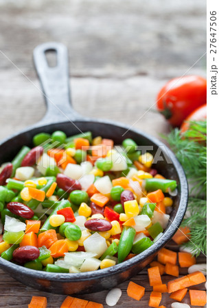 Mixed vegetable meal in old black frying pan