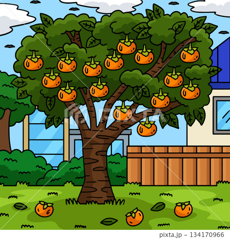 Persimmon Tree Fruit Plant Nature Colored Cartoon