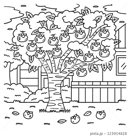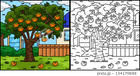 Persimmon Tree Fruit Plant Coloring Illustration