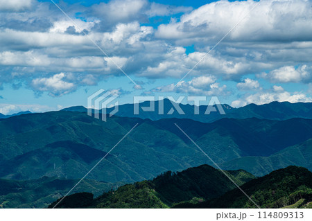 夏の黒森峠から見た四国山地と高縄半島 愛媛県東温市
