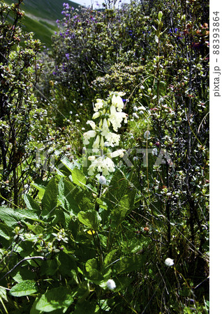中国 四川省 黒水県 羊拱山峠に咲くシソ科サルビア属 Salvia przewalskii
