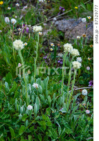 中国 四川省 黒水県 羊拱山峠に咲くキク科ウスユキソウ属Leontopodium dedekensi