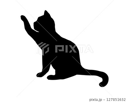 座って手を伸ばすネコのシルエット