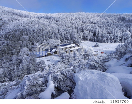 長野県茅野市の厳冬期の東天狗岳の渋ノ湯ルートの黒百合ヒュッテ