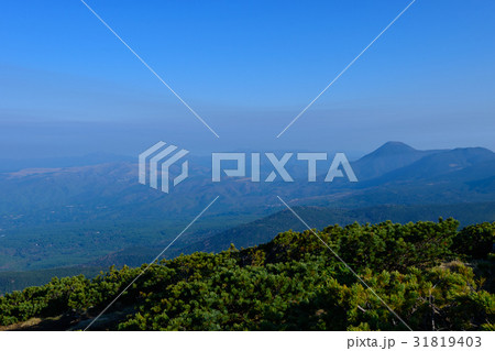 冬の八ヶ岳連峰・天狗岳から見る北八ヶ岳の山並みと浅間山