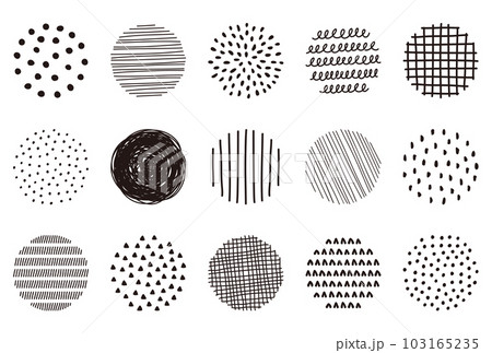白黒手描き模様の円 イラスト素材セット