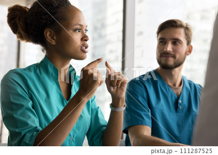 Happy young smiling woman doctor with other hospital.Macro.AI generative.
