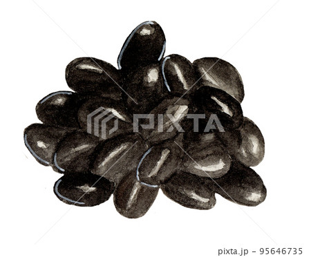 黒豆の蜜煮のリアルなテイストの手描きイラスト