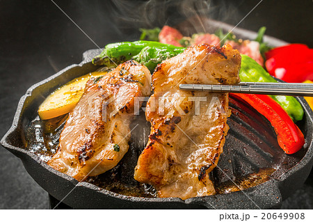 ブランド黒豚でカリカリ焼きとん Iron pan pork roasted meat