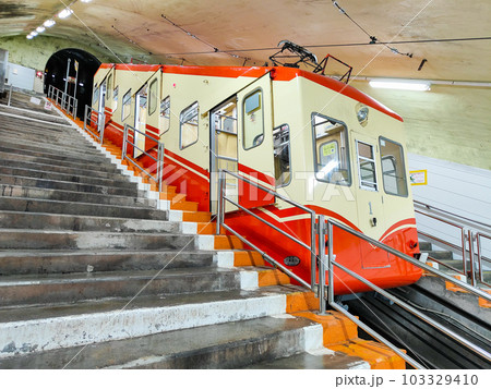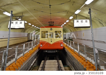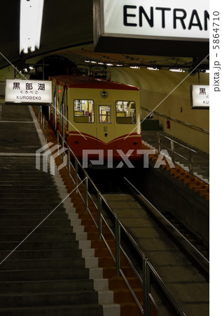立山方面へのケーブルカー黒部湖駅 富山県立山町黒部ダム
