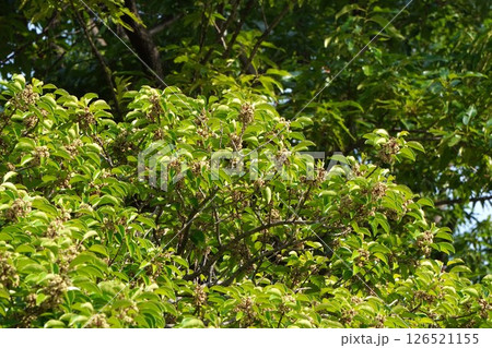 チラホラ咲き始めたクロガネモチの花・2025年5月